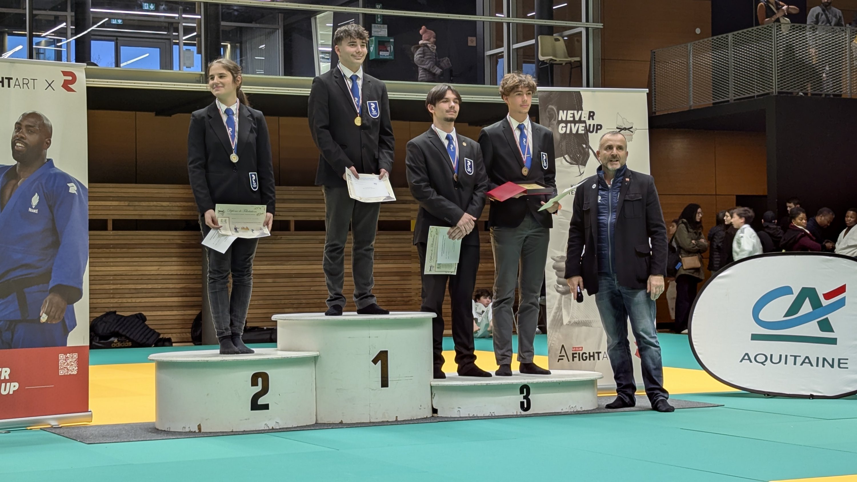 Une journée très importante pour nos minime avec de belles surprises et des moins bonnes. C’est un moment formateur pour le groupe avec pour certains une prise de conscience, des déceptions et un apprentissage constant. Je suis fier de vous aujourd’hui et de ce que vous avez produit sur le tapis en tant que combattant mais également fier de vous voir vous investir sur l’organisation en tant qu’arbitre et commissaire sportif. Déjà hâte de vous retrouver mardi à l’entraînement.