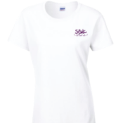 T-shirt manche Courte Femme couleur blanche avec logo coeur et logo dos. 100% polyester. Tissu léger à séchage rapide.